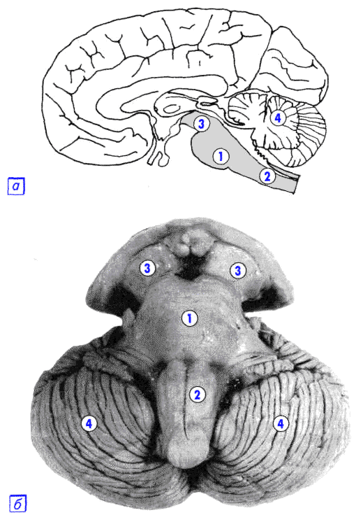 3 - ножка мозга (pedunculus cerebri) ;